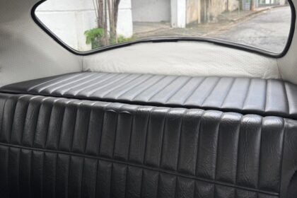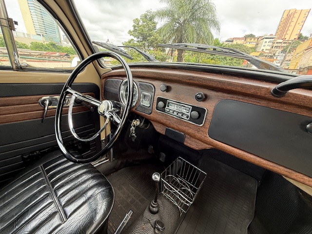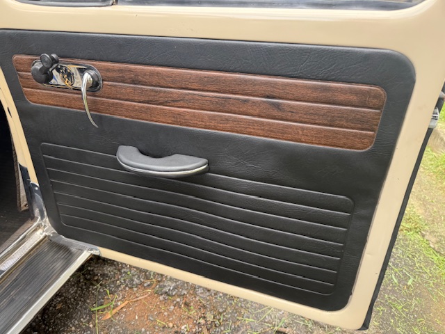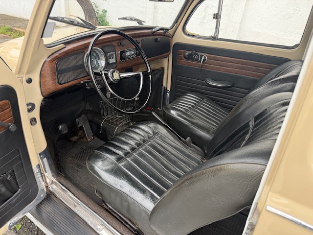 Interior ainda original e preservado, com os acabamentos imitando jacarandá em muito bom estado. Bancos “gomão” ainda originais com poucos desgastes. Assoalho em muito bom estado, com tapete originais. Possui radio AM original com Bluetooth.