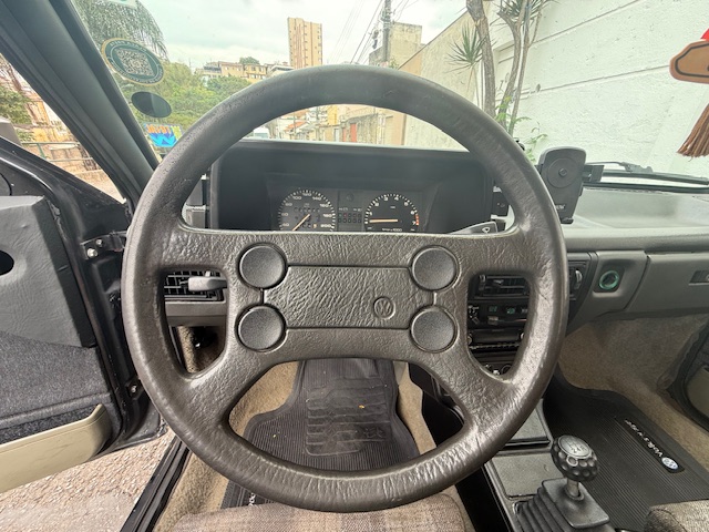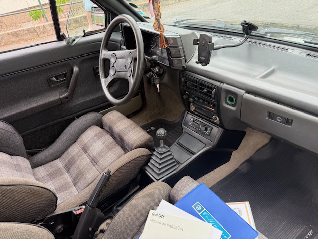 Interior original, com bancos Recaro, volante 4 bolas, painel satélite. Possui ar condicionado, mas não está funcionando.