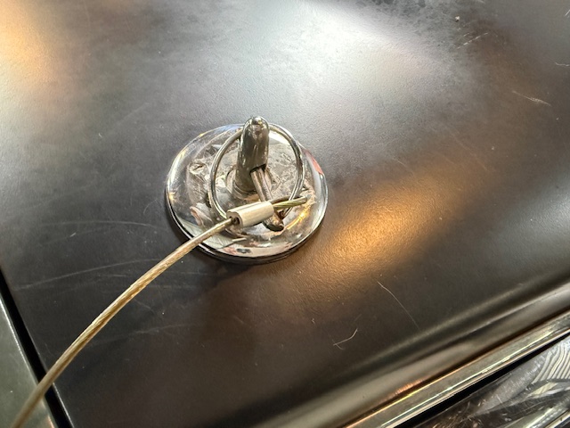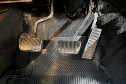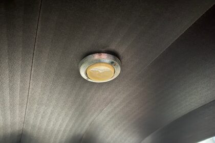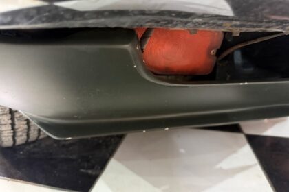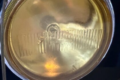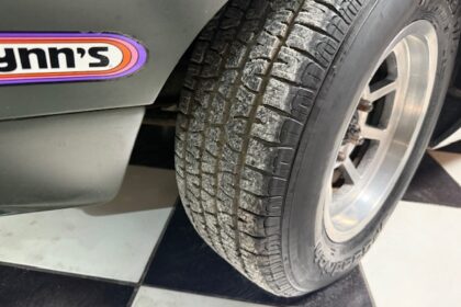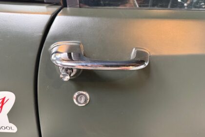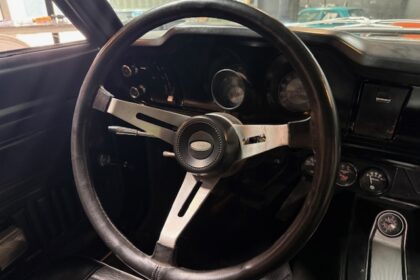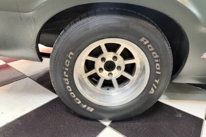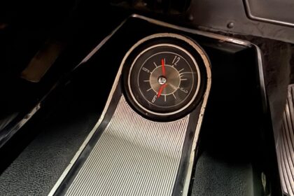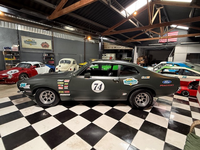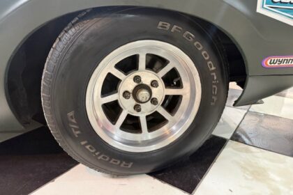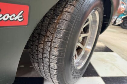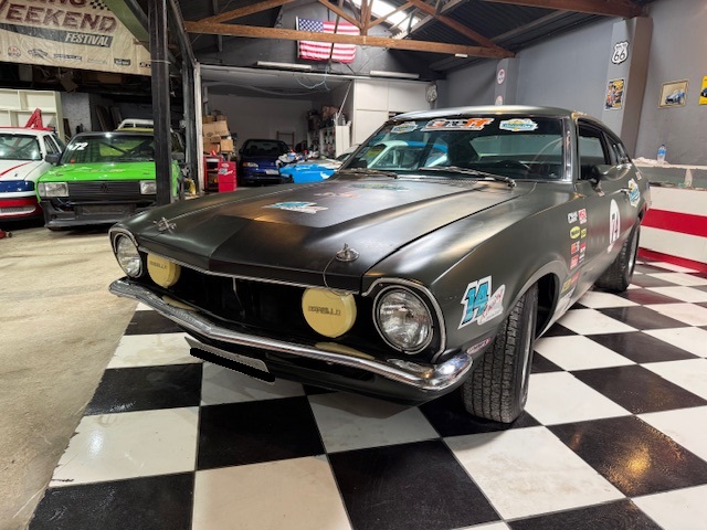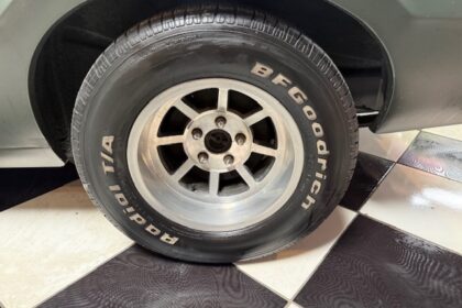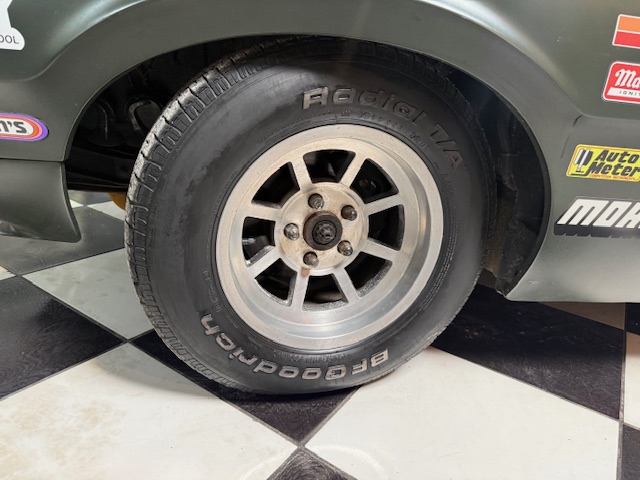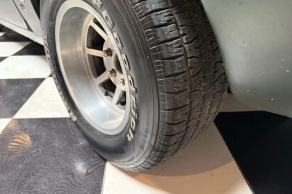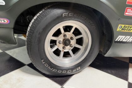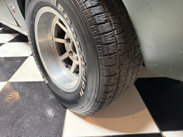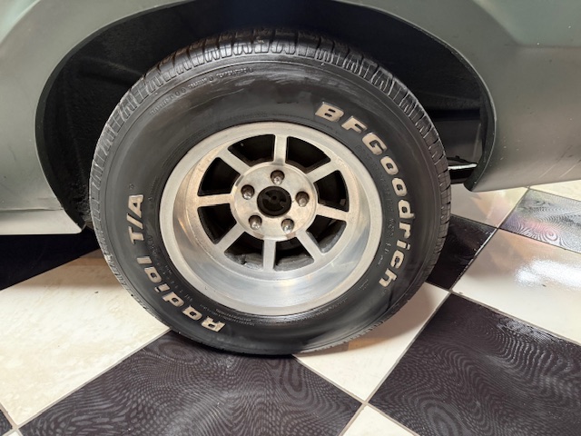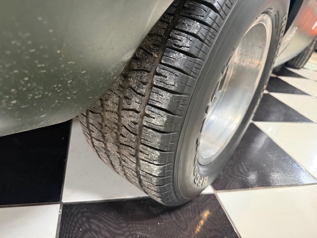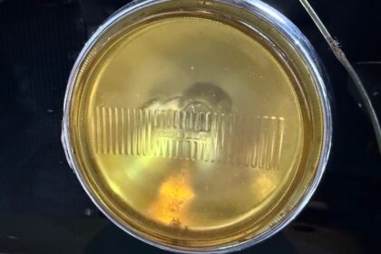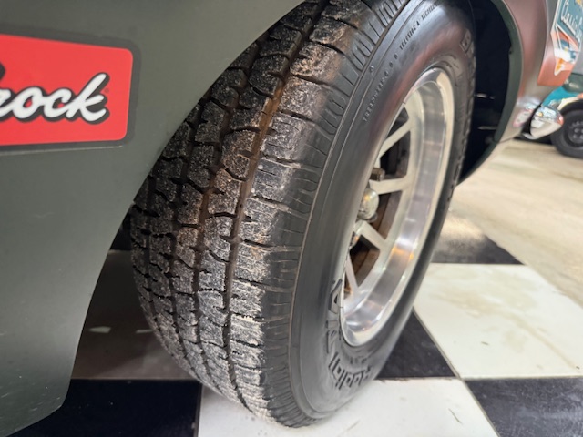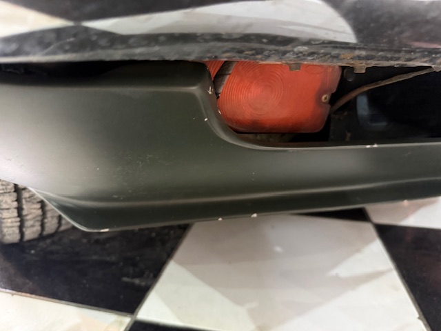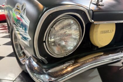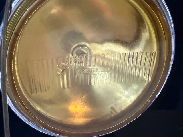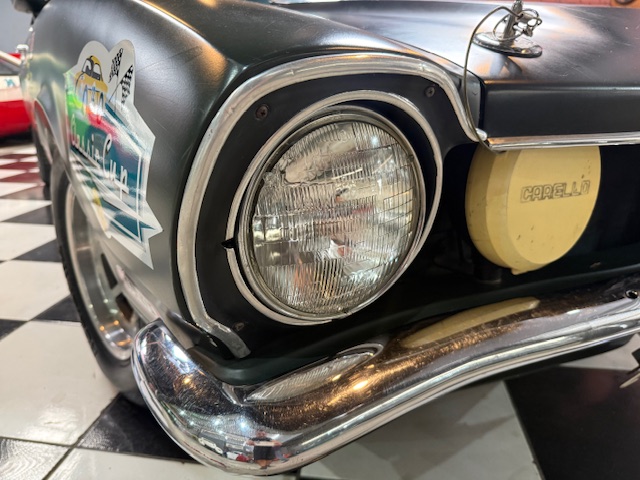 Lanternas e faróis originais, milhas Carello de lentes amarelas com capas. Rodas de época com pneus BF em bom estado.
