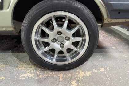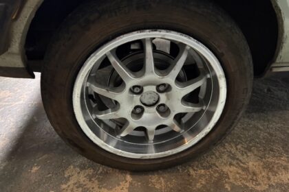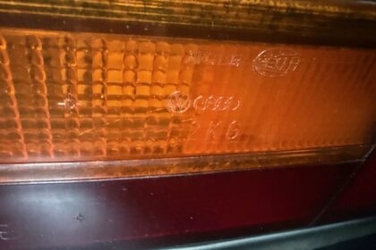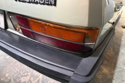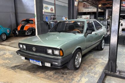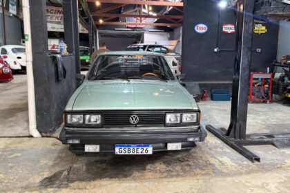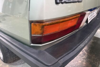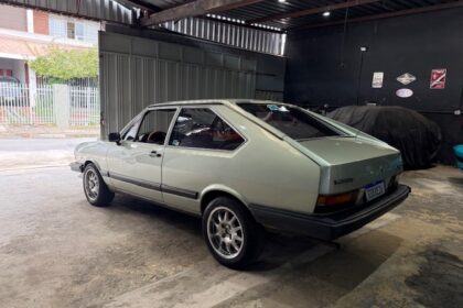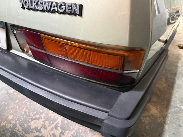 Lanterna traseira originais, com os faróis de milhas retangulares de época e possui rodas aranha com pneus em bom estado.