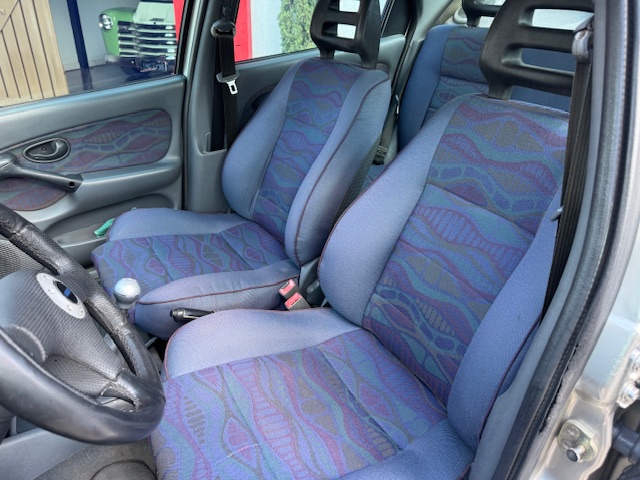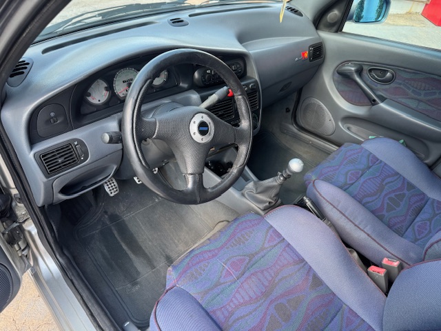 Inteiror preservado com forrações exclusivas em tonalidade azul, e em ótimo estado. Possui o volante esportivo Momo, manopla original. Painel sem trincas e em bom estado.
